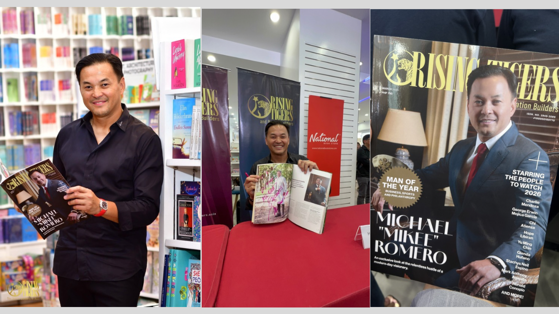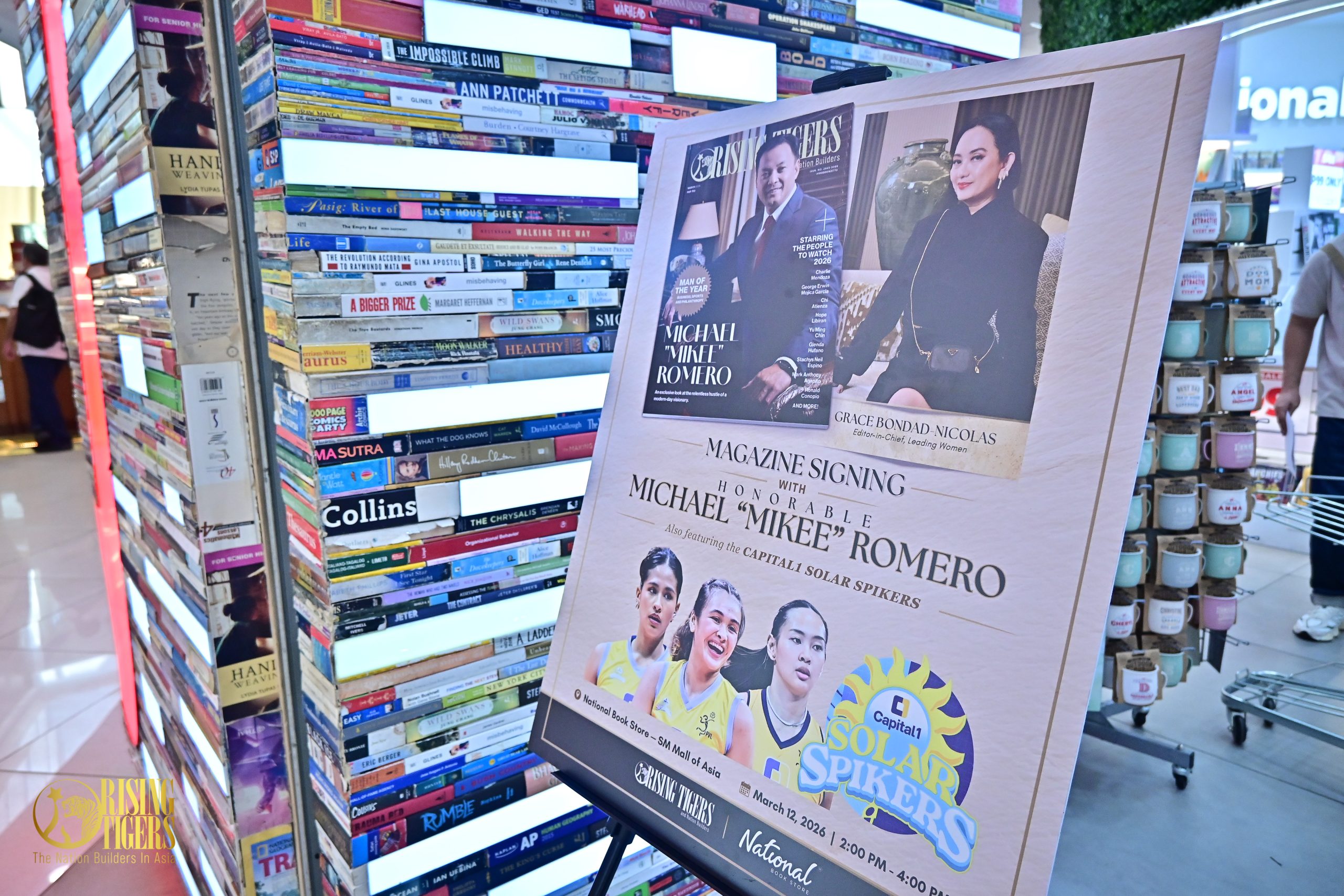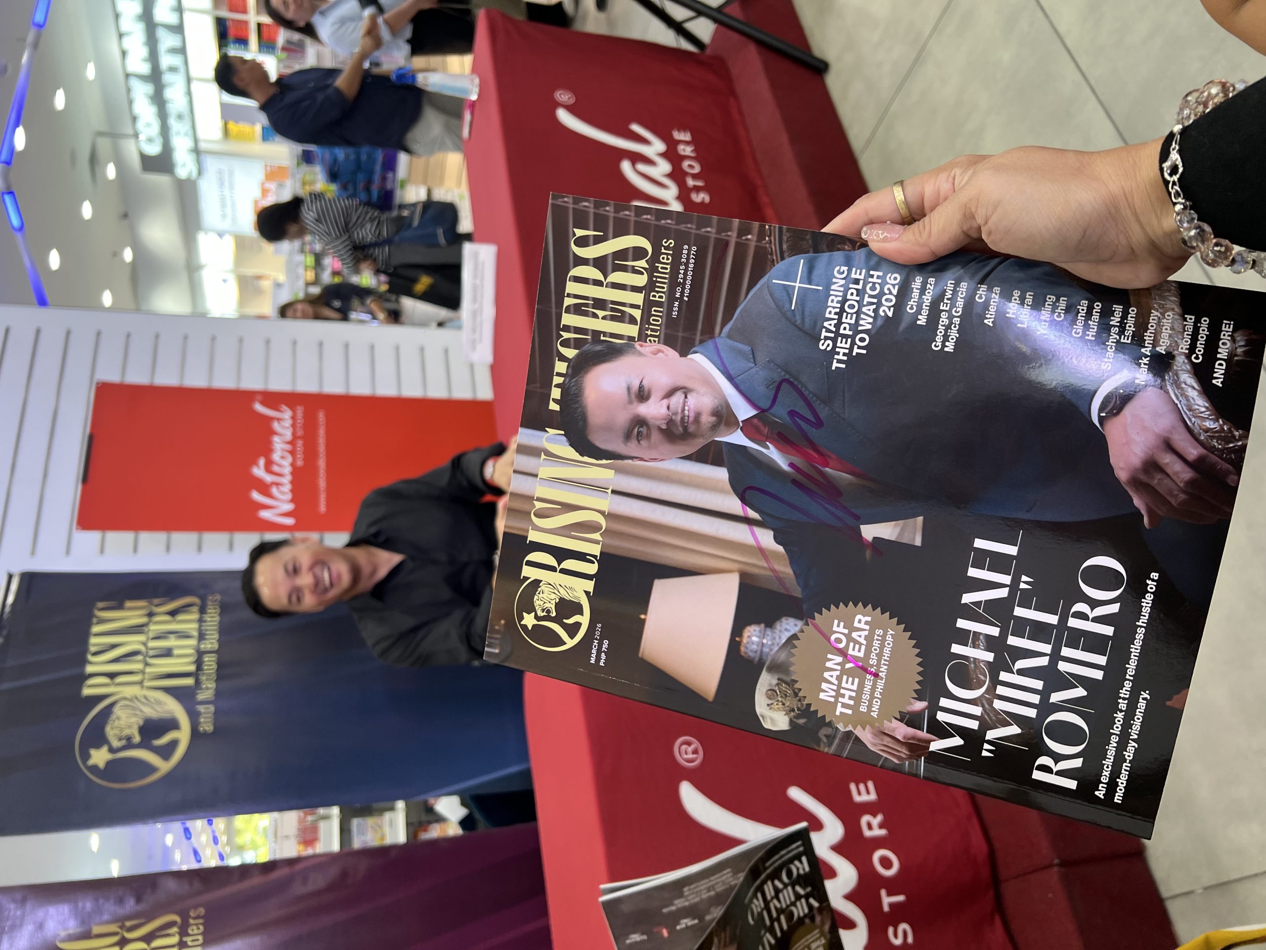 Rising Tigers Magazine hosted a magazine signing event featuring its March cover personality, businessman and philanthropist Mikee Romero. The gathering took place on March 12, 2026 at National Book Store inside SM Mall of Asia in Pasay City, Philippines.